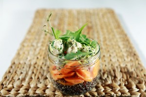 Retour chez Quinoé donc, pour un délice d’Aper-éthique: carottes rapées et raisins secs assaisonnement maison au citron, chips de bananes plantains, velouté de carottes au lait de soja d’une douceur incroyable, et tartine de gorgonzola sur un bon pain frais et bio, que j’ai dû pour ma part remplacer par un savoureux taboulé de quinoa (pour cause de sans gluten). Un petit verre de vin, de bière, de jus, de smoothie ou de thé accompagne les sourires de Marion et Mélissa.