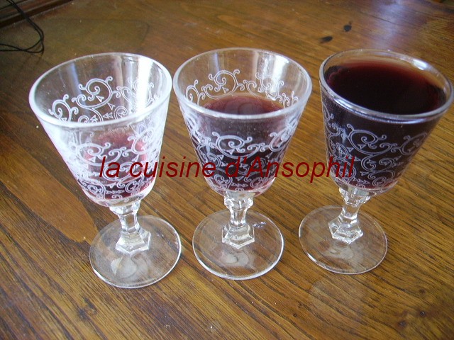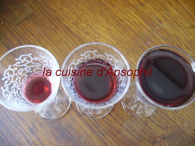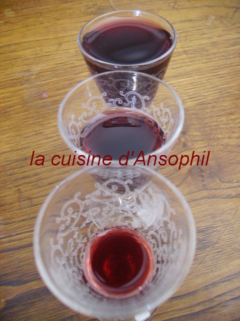 verdict : c’était délicieux,frais, parfumé, délicatement sucré; j’ai préféré le vin de feuilles de framboisier plus goûtu pour moi ….mais attends aussi le vieillissement du vin de cerisier avec impatience ou plutôt patience….car le livre parle d’une cuvée d’une année sur l’autre…il n’est pas sûr qu’il en reste d’ici un mois..alors on y pensera pour l’année prochaine !!!
