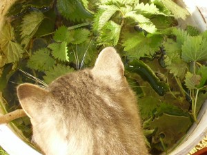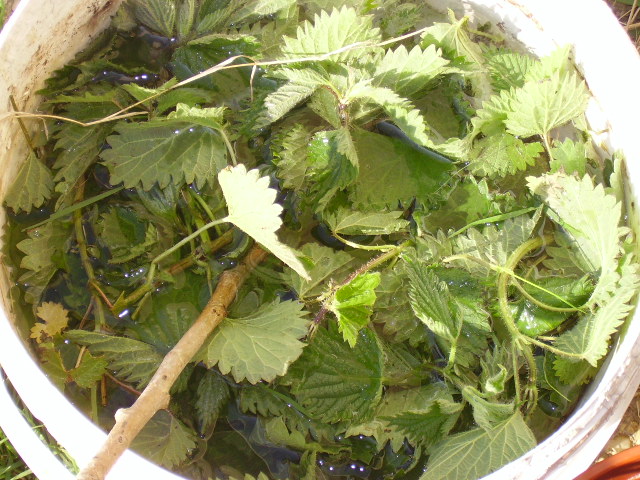 cueillir avec des gants bien épais les orties sans les racines ( çà repoussera pour dans 2 mois quand le premier bidon sera passé…);